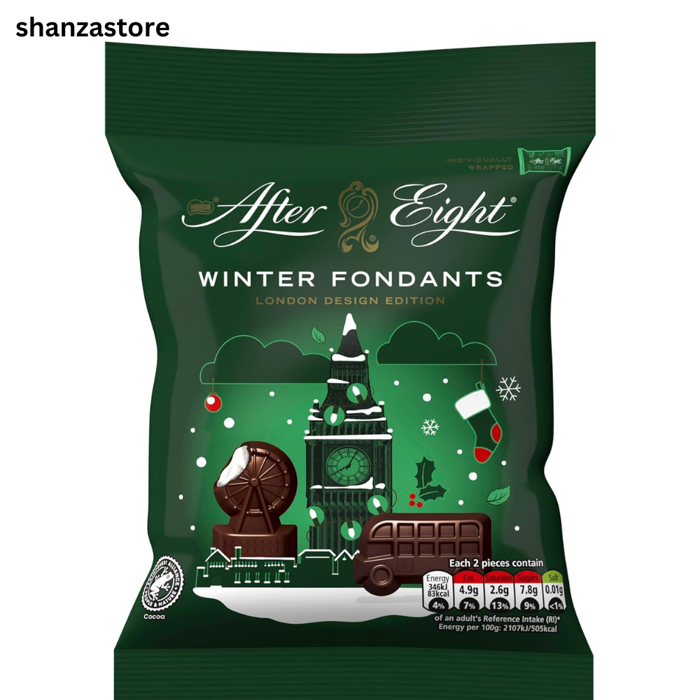 WINTER EDITION: This London Design Christmas Edition Chocolate Pouch comes with up to 8 different dark chocolate figures with a peppermint flavoured filling. Savour the taste of a classic in a festive design, that will bring joy to everyone in the family.