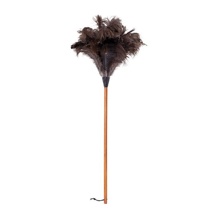 The ostrich feather is the king of feather dusters. It is held in high esteem by professionals who appreciate both its softness and thoroughness. Its fine fluffy feathers contain millions of small fibres which not only “whisk” the dust, but holds it with an iron-like grip. A brief shake removes any dust and it’s ready for use again. Perfect for anything valuable and delicate!