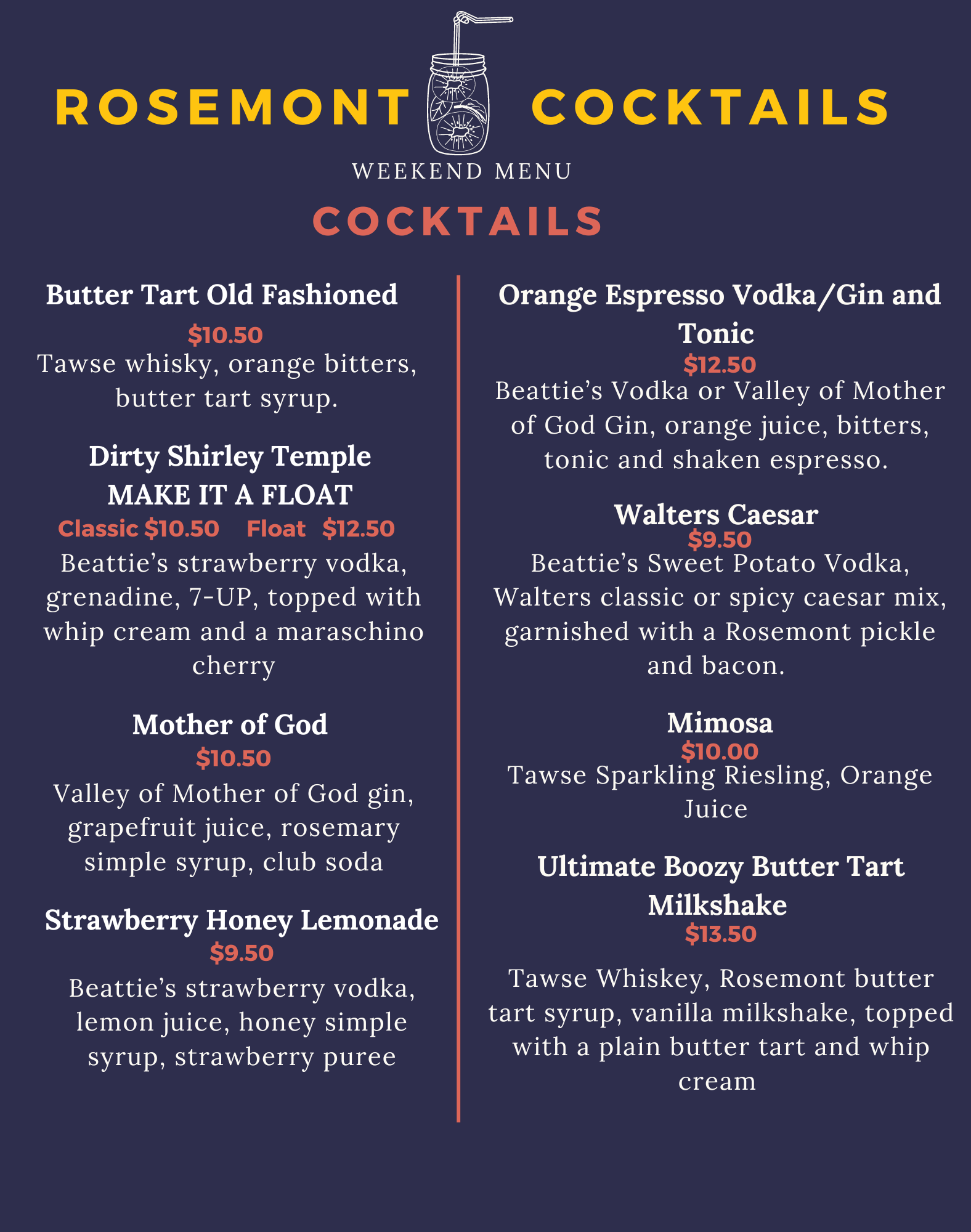 If looking to book for a party of 7 or more please email rgs@rosemont.ca or call us at