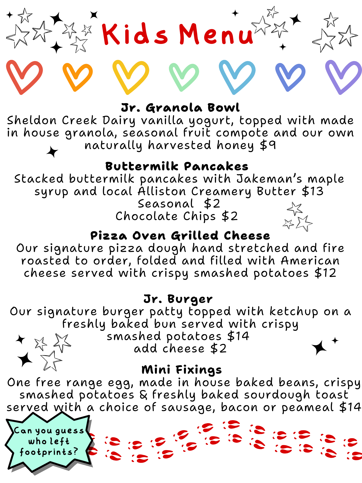 Made to Order Pizza: Monday & Tuesday: 10 - 3 Wednesday - Sunday: 10 - 4